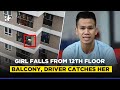 A 2-year-old girl who fell from the twelfth floor of the building was rescued by a man using her brain. The girl was hanging from the balcony while playing.